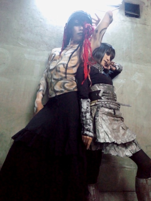 ありすちゃんこと、有栖川ソワレ嬢と◎ マリー(廻天百眼 八発目本公演『死ぬ機械』より)のお衣裳が 実によく似合う。 |