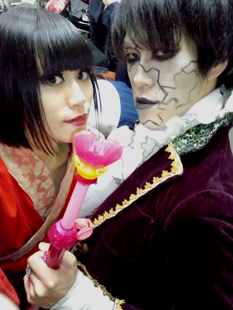 衣裳と武器は『鬼姫2012』より、極楽丸ちゃんのものを拝借! そういえば、半分機械だった髪が真っ黒に戻りました。 楽屋写真いろいろ◎ |