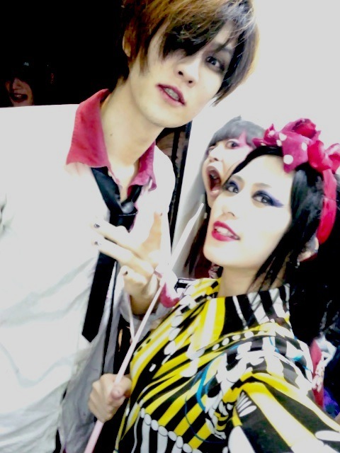 紅蝉、咲汰さん(サポートドラム)と◎ また妖怪が写り込んでる。 |