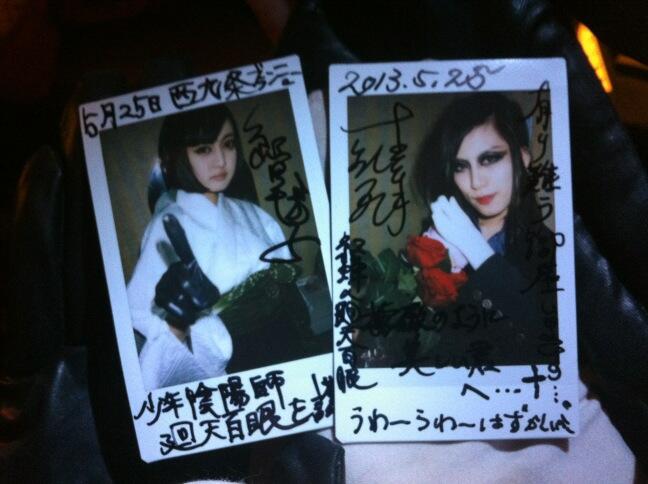 「少年陰陽師 廻天百眼を護る」「薔薇のように美しい君へ・・・」 二人して様子がおかしい。 手に入れた方はおめでとう。 今回のチェキは、相当レアです。笑 紅蝉さん、復活後一周年 おめでとう御座います! またご一緒出来て良かった。有難う御座いました。 そして大阪の君たち、素敵な夜を有難う。 夢から醒めても愛している! 次に大阪で、廻天百眼に会えるのはこの日! 『大阪 眼帯アリス症候群13』 時・6月30日(日) 15時半 開宴 於・江坂MUSE HALL まさかの ワタクシ十三月紅夜、誕生日で御座います。 ご来場を心より、心よりお待ちしております! 出来ることならこの日、あなたと共に過ごしたい。 |
