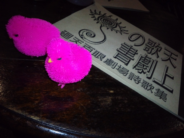 廻天百眼の劇場詩歌集【天井歌劇の書】! 百眼の旗揚げから、前回の本公演『存ぜぬ快楽』までの 代表的な劇中詩、歌詞を収録した、豪華な詩集。 私も百眼の一ファンとして、ずっとずっと欲しかったもの。 『黒色サロス』以前の、私がまだ百眼を知らなかった頃の作品も 沢山掲載されていて、それはどれも本当に素敵で、 その当時に自分が関われなかったことを、淋しく思ったりして。 お客様にも大好評頂きまして、私としても嬉しい限りです。 沢山の人に、是非一度はご覧になって頂きたい。 今後襦袢クラブの他、ショウや公演でお手にとって頂けると思います。 電子書籍も御座いますので、是非ご覧下さい◎ 襦袢クラブでは、【天井歌劇の書】に収録された詩の朗読や、お唄、 歌あり踊りあり朗読ありのショウ等がご注文頂けます。 私はここ最近、毎回『花鳥風月』を唄わせて頂いておりまして、 本当に、嬉しい限りで御座います◎ でも、もっと沢山唄いたいし朗読したいし、ショウもしたい・・・! 団員皆、同じ気持ちでおります。 どうぞ宜しくお願い致します。笑 |